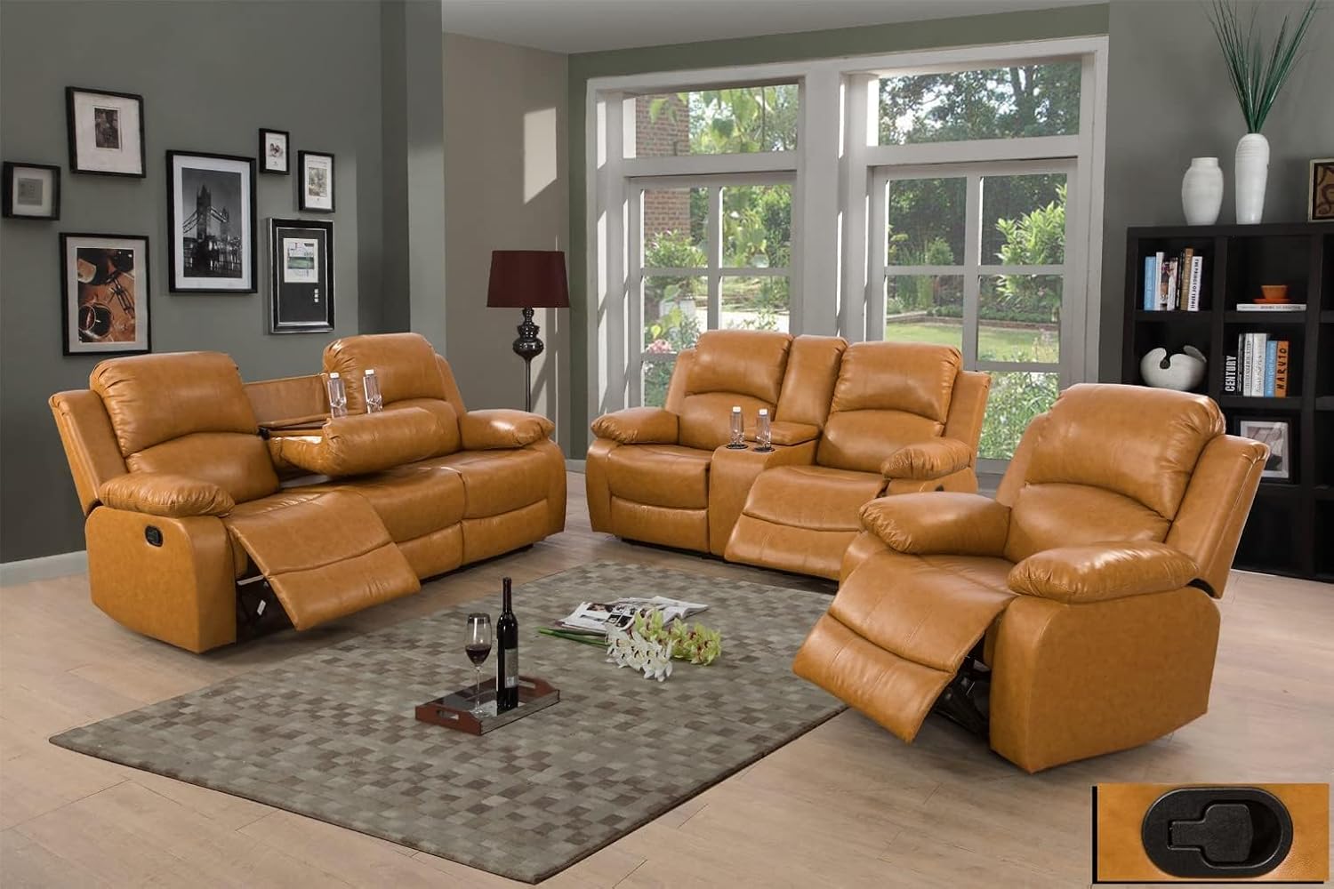 | Included Components | 3 boxes, parts in the zipper compartment, a recliner sofa set, a loveseat, and a chair |