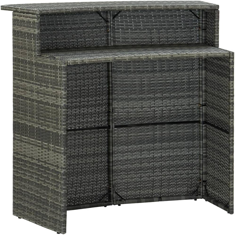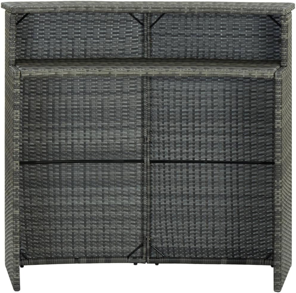 This curved bar table featuring 2-tier top is a perfect choice for any home, garden, bar, pub, restaurant, etc.Featuring a powder-coated steel frame covered with weather-resistant PE rattan, this counter table ensures years of outdoor use. The 2-tier top provides additional storage space for your item within reach. Thanks to the lightweight PE rattan construction, this patio table is easy to move.Color: BlackMaterial: PE rattan, powder-coated steelDimensions: 47.2" x 21.7" x 43.3" (L x W x H)Assembly required: Yes